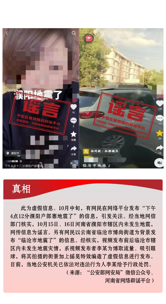 - 打击网络谣言 共建清朗家园 中国互联网联合辟谣平台2024年10月辟谣榜