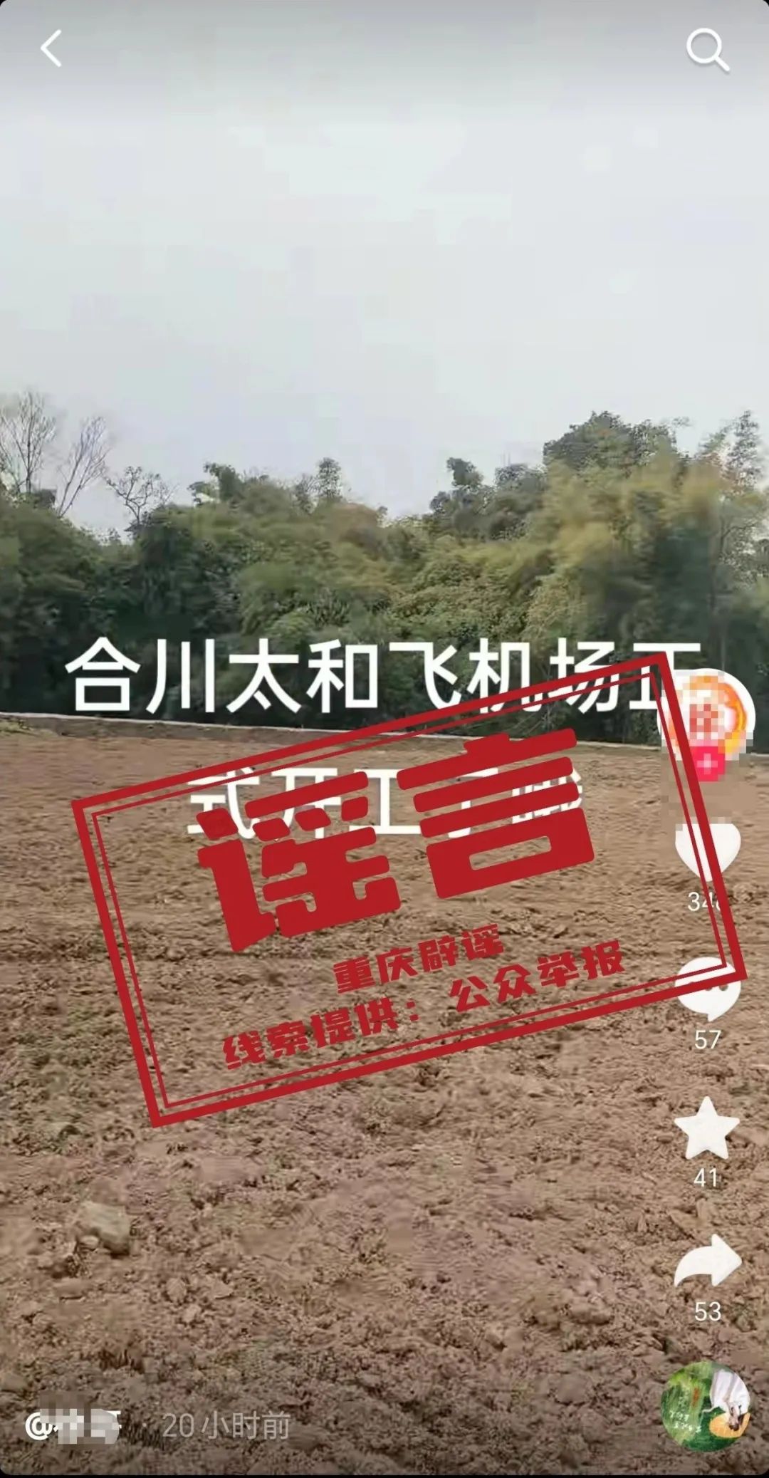 - 重庆市合川区太和飞机场正式开工?谣言!
