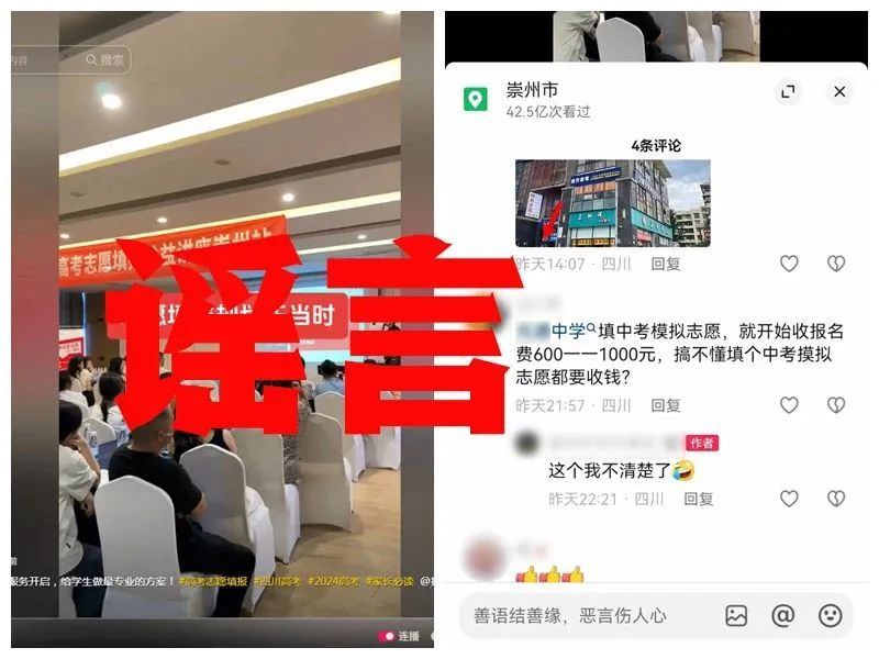 - 成都崇州一男子造谣“填报中考模拟志愿要收钱”被处罚
