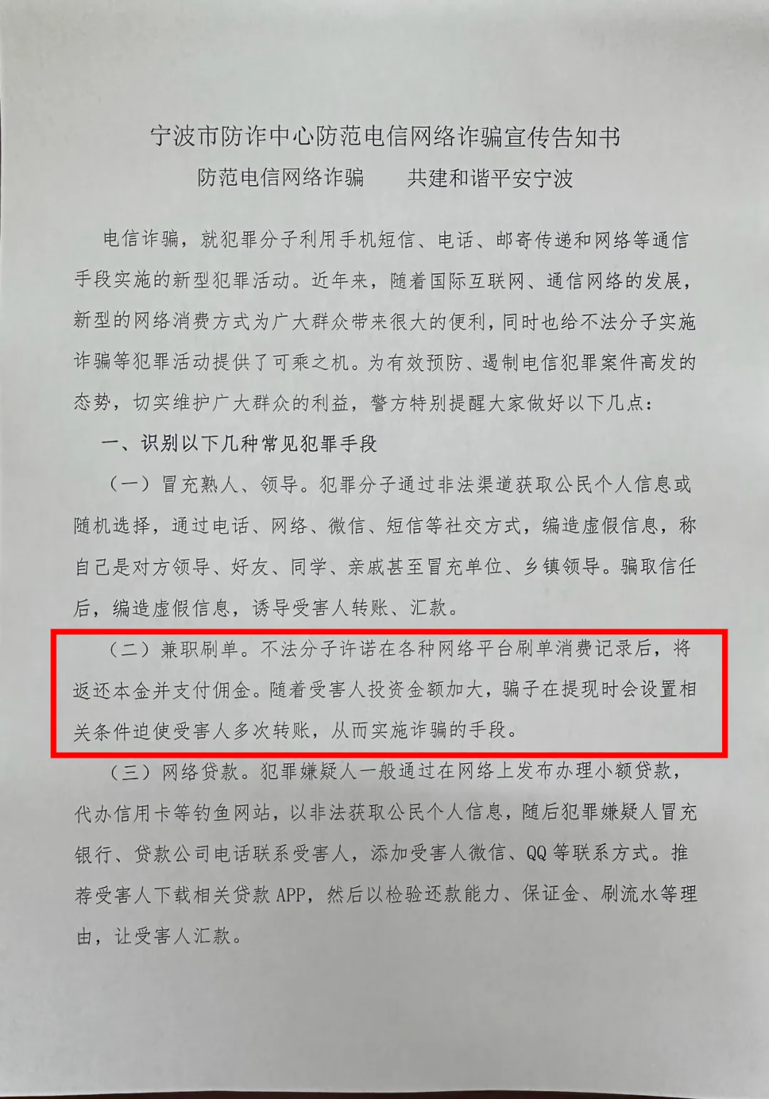 防范电信网络诈骗告知书说